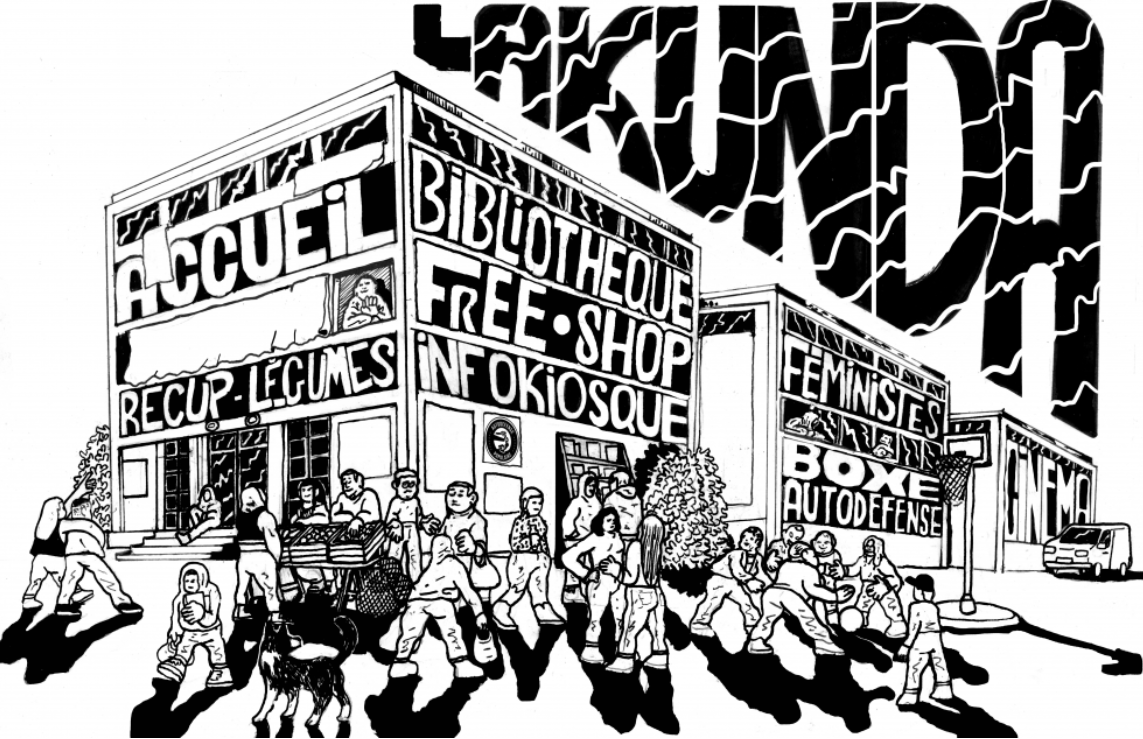 Collectif pour l’accès a logement pour tous.tes et à une vie digne, organisé.es autour du squat de La Kunda à Vitry-sur-Seine qui propose aussi pleins de services et activités gratuites (cours de boxe, bibliothèque, récup de légumes, etc).